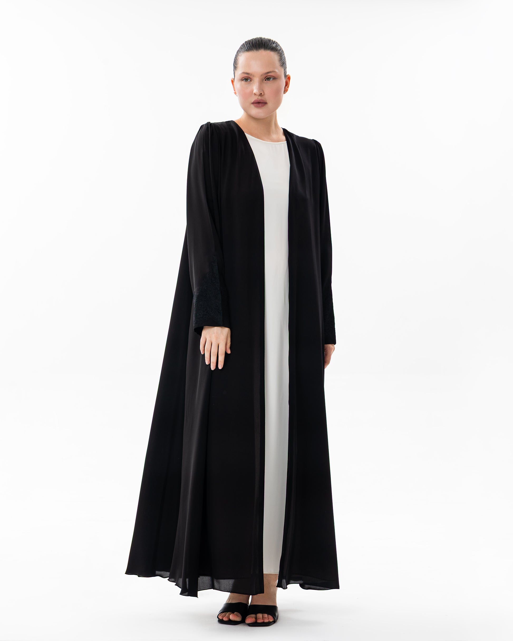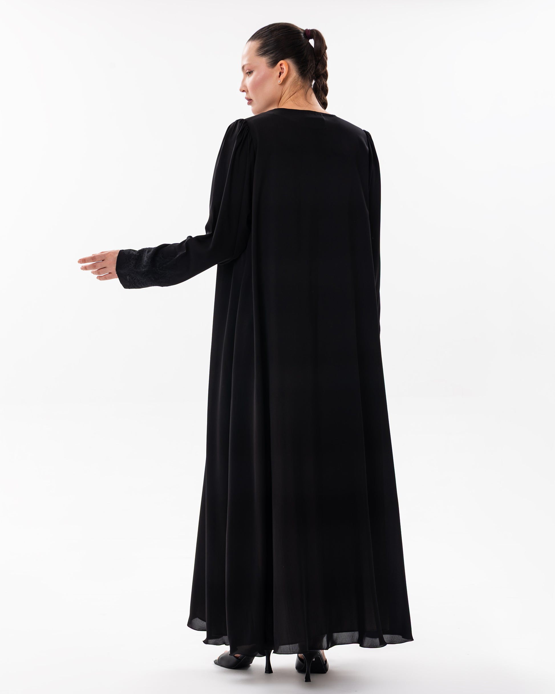 Crepe Fabric abaya with Bishop sleeves cut and pleetes along abaya