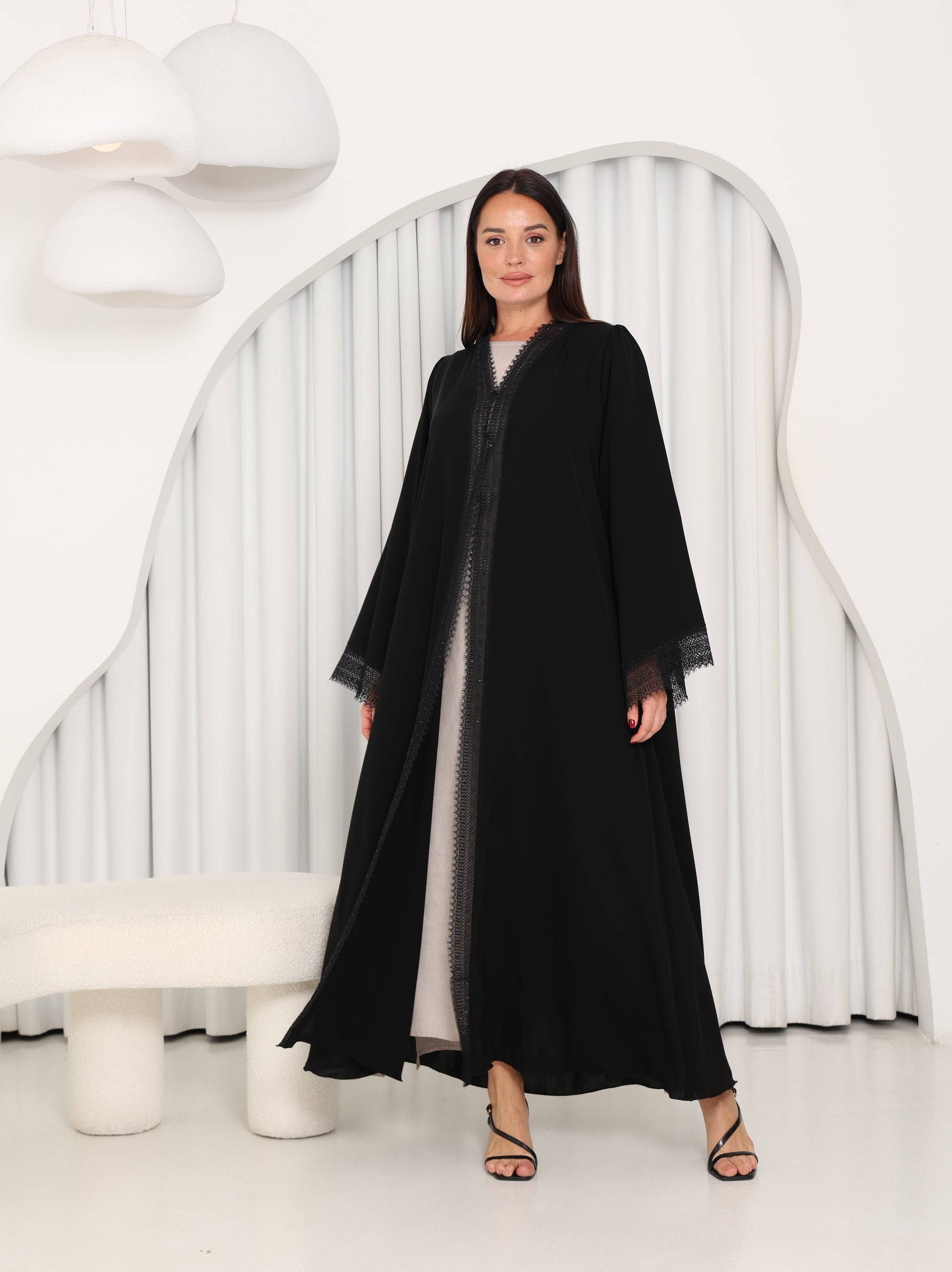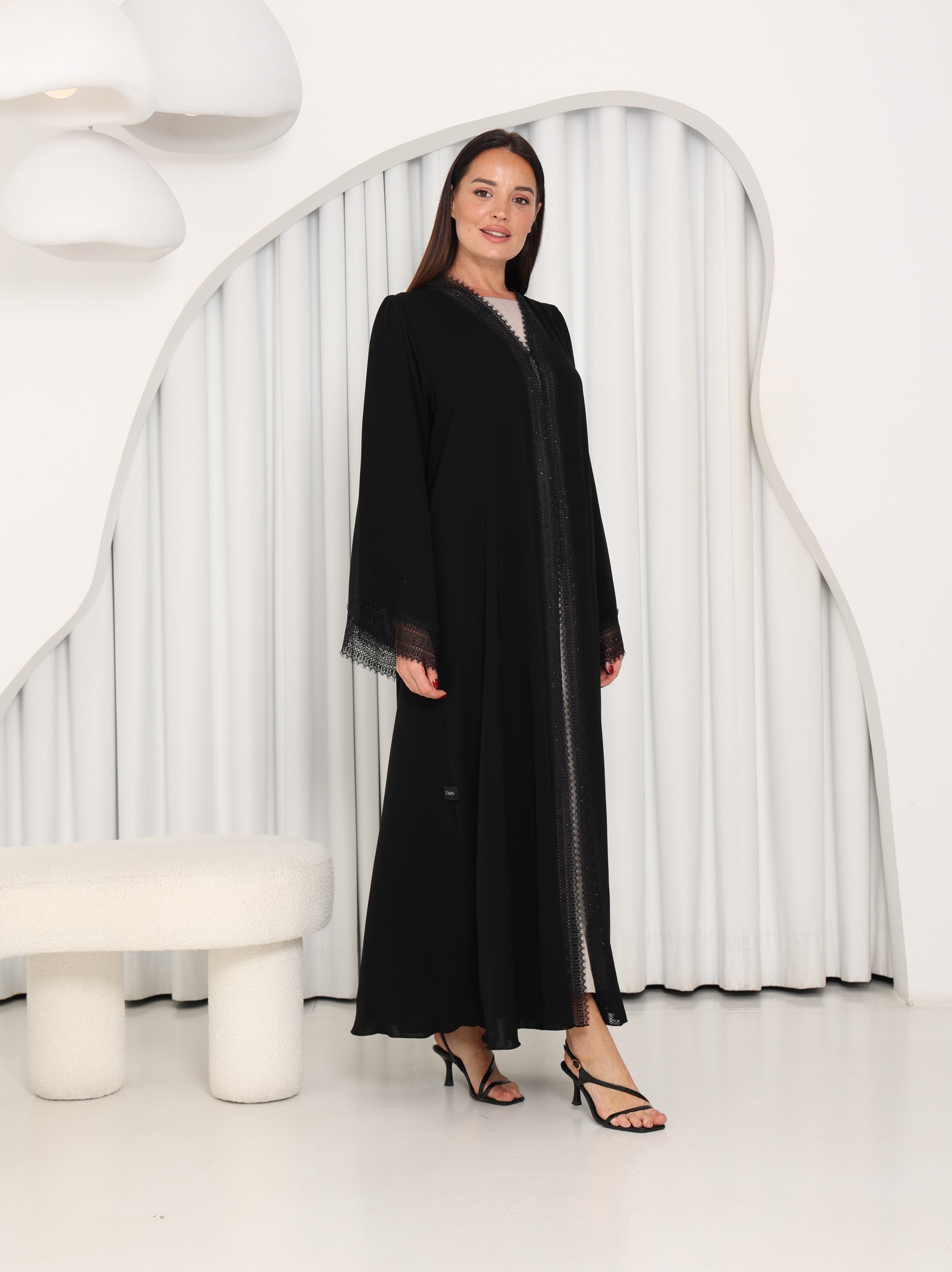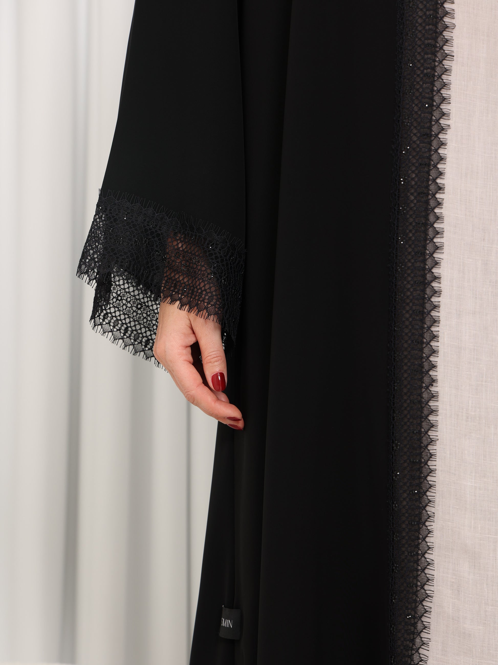 Dentelle with Shiny Stones on sleeves and inner side of the Abaya