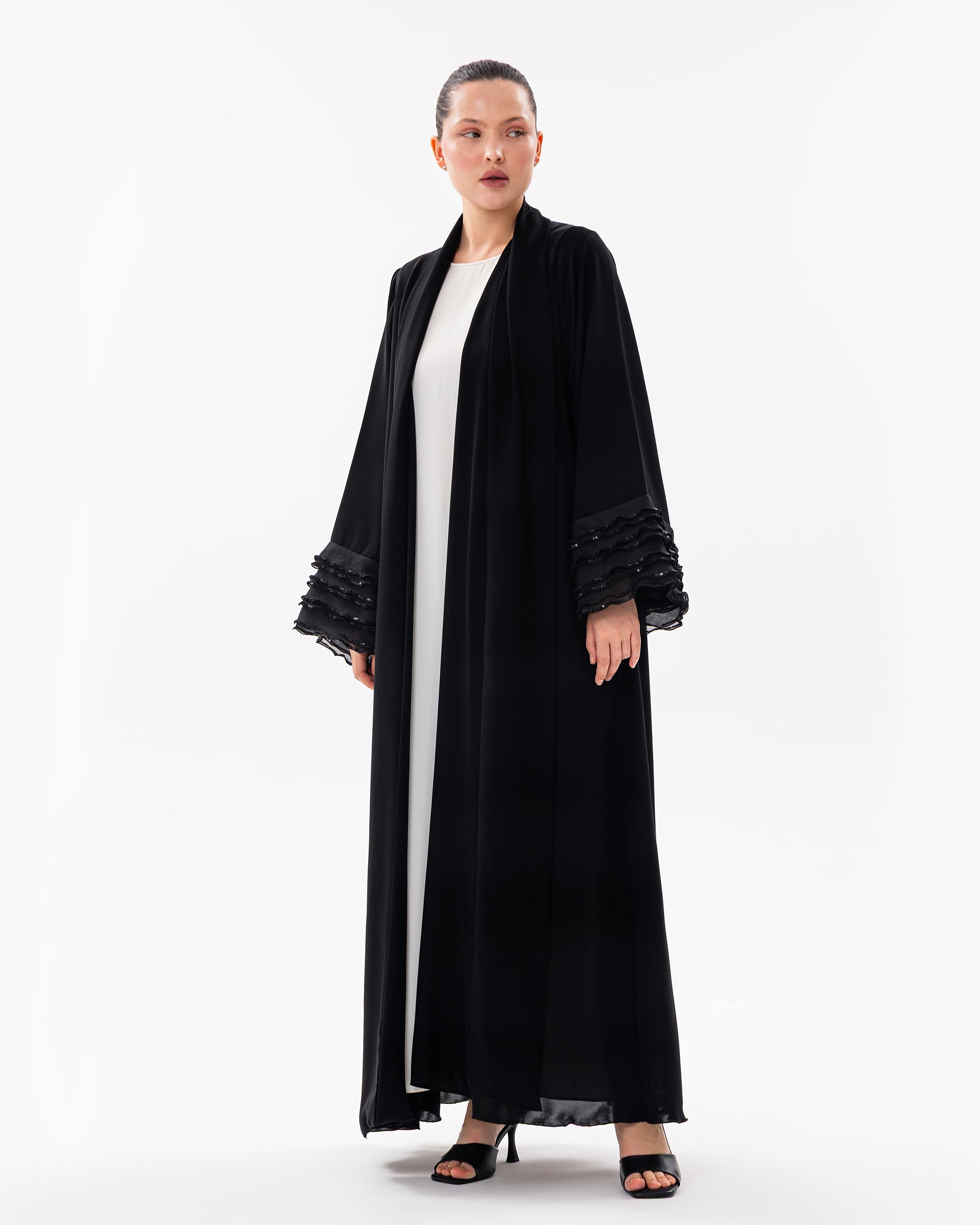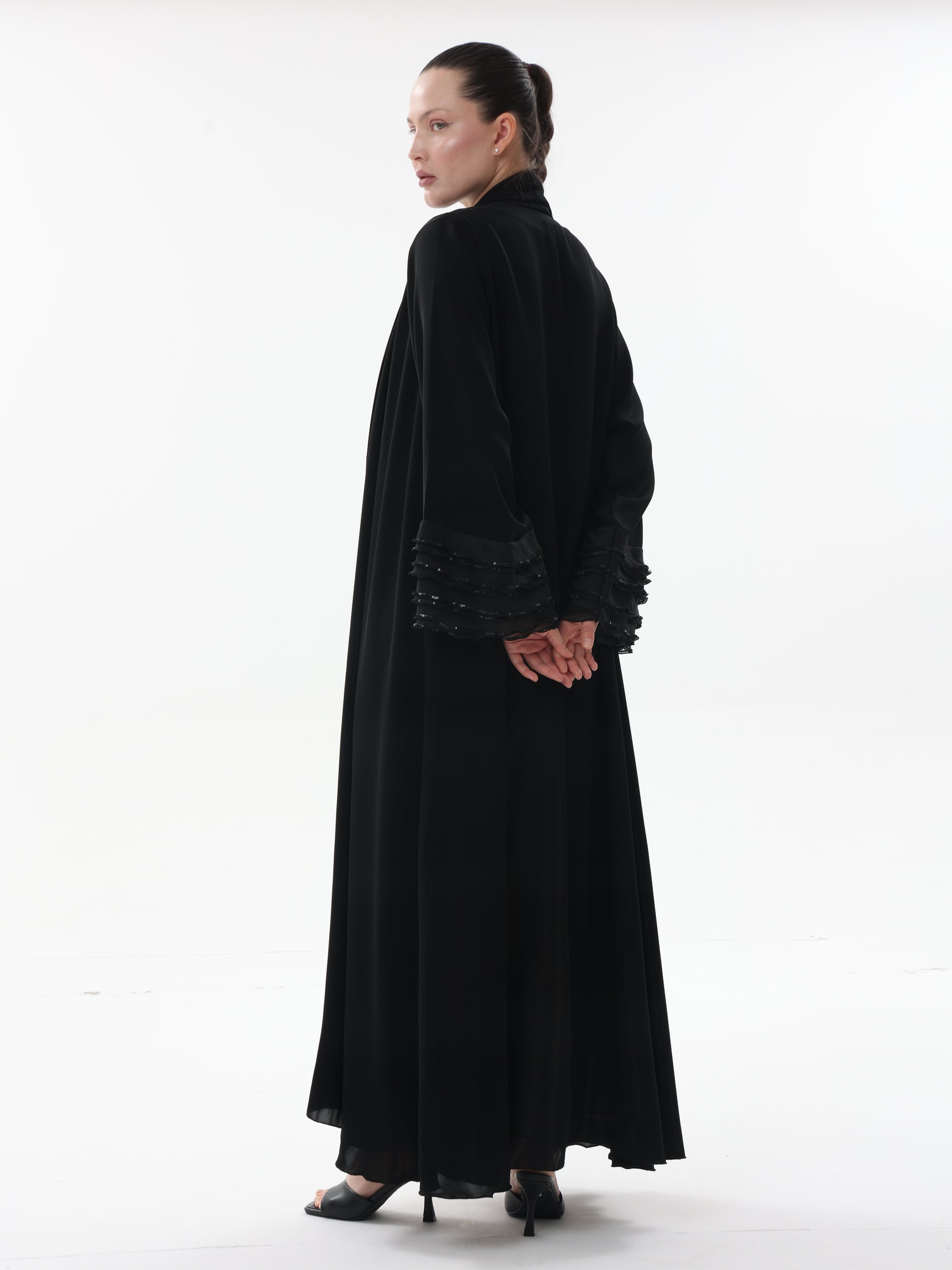 Puffy Sleeves Abaya with sequence work on sleeves and Jasmin exclusive abaya cut.